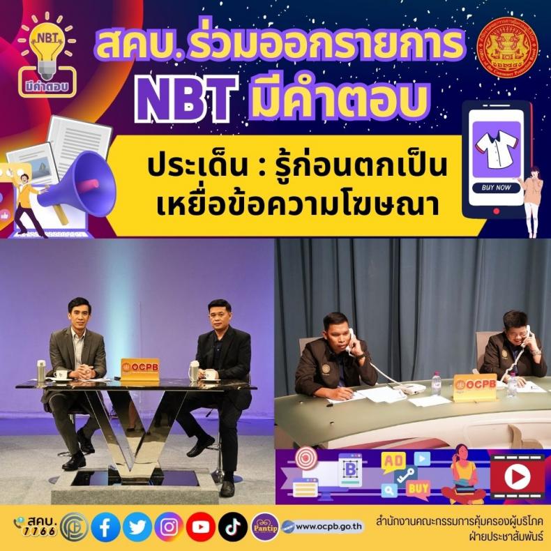 สคบ. ร่วมออกรายการ "NBT มีคำตอบ" ประเด็น : "รู้ก่อนตกเป็นเหยื่อข้อความโฆษณา"