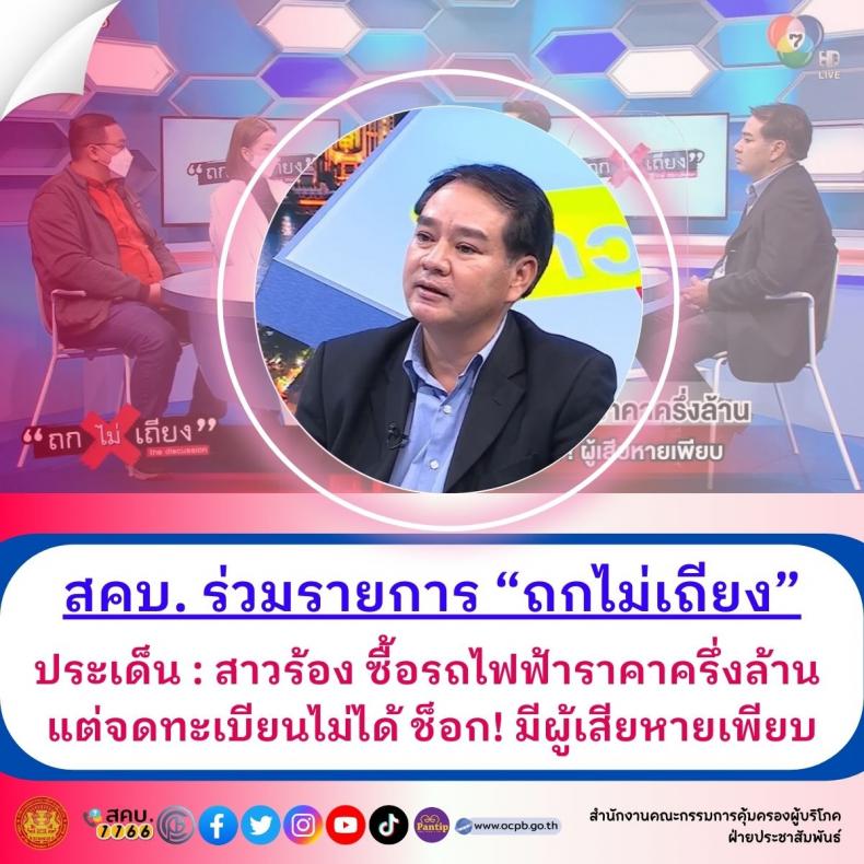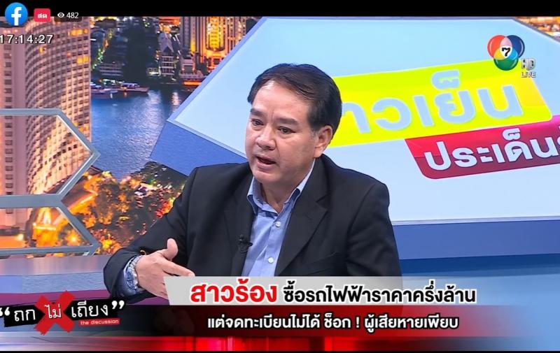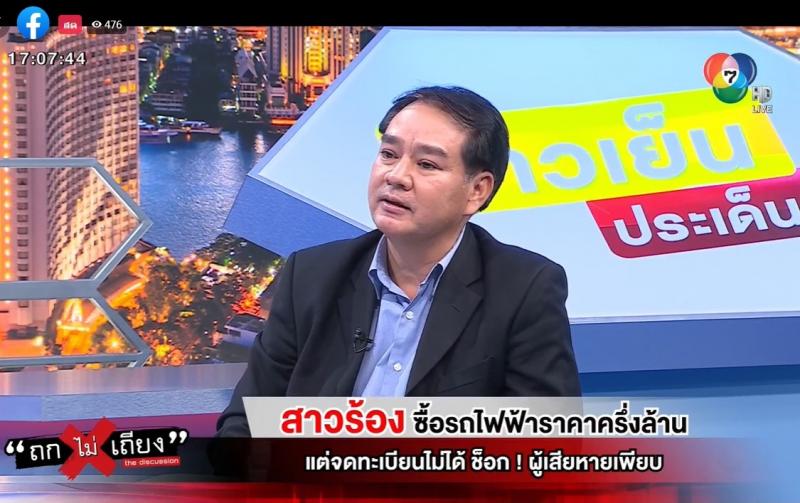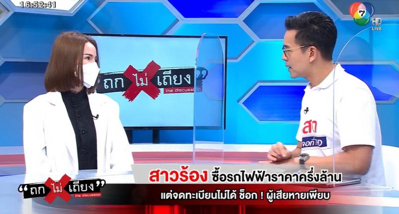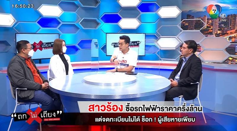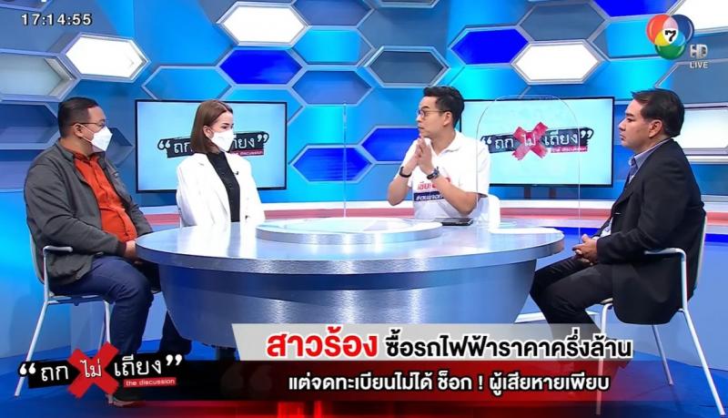 สคบ. ร่วมรายการ “ถกไม่เถียง” ประเด็น : สาวร้อง ซื้อรถไฟฟ้าราคาครึ่งล้าน แต่จดทะเบียนไม่ได้ ช็อก! มีผู้เสียหายเพียบ