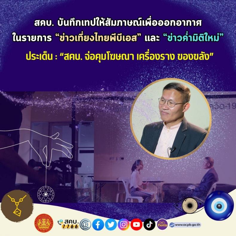 สคบ. บันทึกเทปให้สัมภาษณ์เพื่อออกอากาศ ในรายการ “ข่าวเที่ยงไทยพีบีเอส” และ “ข่าวค่ำมิติใหม่” ประเด็น “สคบ. จ่อคุมโฆษณาเครื่องราง ของขลัง”
