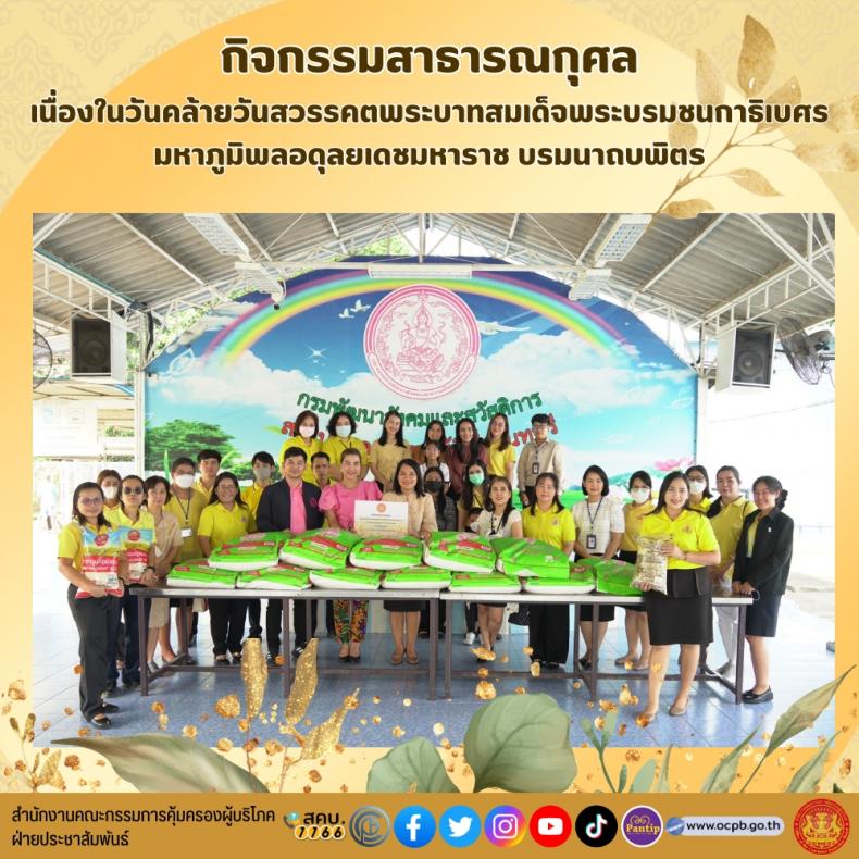 วันศุกร์ที่ 20 ตุลาคม 2566 เวลา 09.30 น. เลขาธิการคณะกรรมการคุ้มครองผู้บริโภค (นายธสรณ์อัฑฒ์ ธนิทธิพันธ์) มอบหมายให้นางสาวทรงศิริ จุมพล เลขานุการกรม พร้อมด้วยเจ้าหน้าที่ของสำนักงานคณะกรรมการคุ้มครองผู้บริโภค ร่วมกิจกรรมสาธารณกุศลเนื่องในวันคล้ายวันสวรรคตพระบาทสมเด็จพระบรมชนกาธิเบศร มหาภูมิพลอดุลยเดชมหาราช บรมนาถบพิตร ณ สถานคุ้มครองคนไร้ที่พึ่ง จังหวัดนนทบุรี
