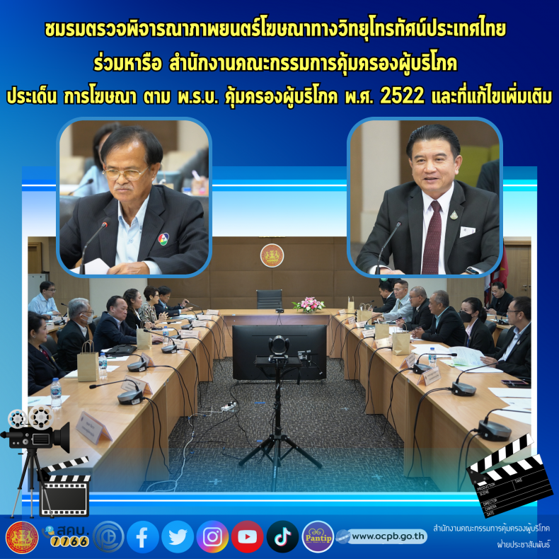 ชมรมตรวจพิจารณาภาพยนตร์โฆษณาทางวิทยุโทรทัศน์ประเทศไทย​ ร่วมหารือ​ สำนักงานคณะกรรมการ​คุ้มครองผู้บริโภค​ ประเด็นการโฆษณา​ตาม​ พ.ร.บ.​ คุ้มครองผู้บริโภค​ พ.ศ.​ 2566 และที่แก้ไขเพิ่มเติม