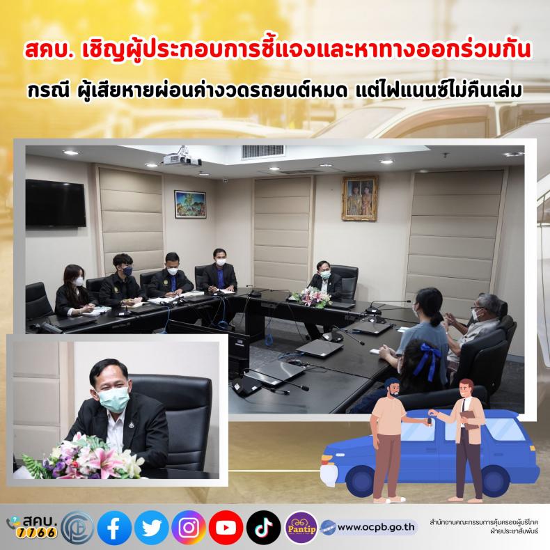 สคบ.​ เชิญผู้ประกอบการชี้แจงและหาทางออกร่วมกัน​ กรณี​ผู้เสียหายผ่อนค่างวดรถยนต์หมด​ แต่ไฟแนนซ์​ไม่คืนเล่ม