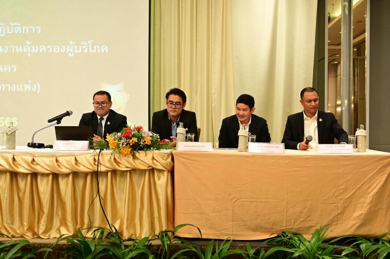 วันที่ 22 ธันวาคม 2566 เวลา 09.00 น. เลขาธิการคณะกรรมการคุ้มครองผู้บริโภค (นายธสรณ์อัฑฒ์ ธนิทธิพันธ์) เป็นประธานโครงการสัมมนาเชิงปฏิบัติการ : การพัฒนาศักยภาพการดำเนินงานคุ้มครองผู้บริโภคของกรุงเทพมหานคร (กระบวนการยุติธรรมทางแพ่ง) โดยมีนายฐิตินันท์ สิงหา ผู้อำนวยการกองกฎหมายและคดี รักษาราชการแทนผู้อำนวยการสำนักประสานและส่งเสริมการคุ้มครองผู้บริโภคจังหวัด การจัดโครงการในครั้งนี้มีวัตถุประสงค์เพื่อเสริมสร้างองค์ความรู้และพัฒนาศักยภาพการดำเนินงานคุ้มครองผู้บริโภคของกรุงเทพมหานคร ในการปฏิบัติงานด้านการคุ้มครองผู้บริโภคในการรับเรื่องร้องทุกข์จากผู้บริโภคทำให้ประชาชนได้รับความสะดวกในการร้องทุกข์ และเพื่อเป็นการเตรียมความพร้อมและซักซ้อมความเข้าใจในการปฏิบัติงานด้านการคุ้มครองผู้บริโภค ได้แก่การรับเรื่องร้องทุกข์จากผู้บริโภค การตรวจสอบผู้ประกอบธุรกิจ และการเผยแพร่ประชาสัมพันธ์ โดยมีกลุ่มเป้าหมายเข้าร่วมได้แก่ เจ้าหน้าที่พนักงานปกครอง เจ้าหน้าที่ของสำนักงานเขตที่ได้รับมอบหมายให้ปฏิบัติหน้าที่รับเรื่องร้องทุกข์ด้านการคุ้มครองผู้บริโภคทั้ง 50 เขต และเจ้าหน้าที่สำนักอนามัย กรุงเทพมหานคร รวมทั้งสิ้น 180 คน ณ โรงแรมอมารี ดอนเมือง แอร์พอร์ต กรุงเทพมหานคร