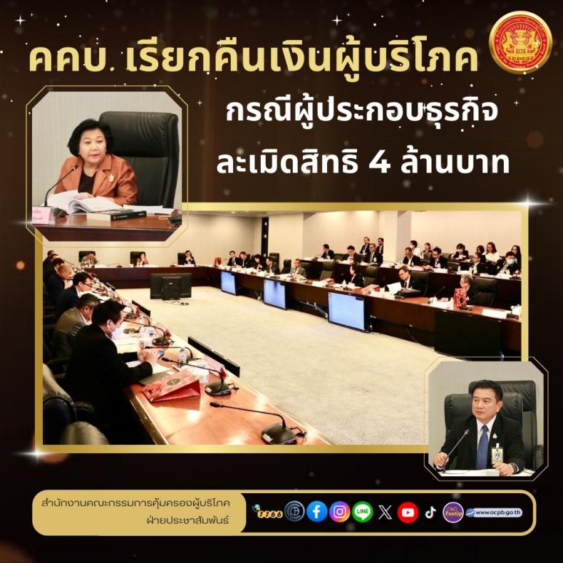 คคบ. เรียกคืนเงินผู้บริโภคกรณีผู้ประกอบธุรกิจละเมิดสิทธิกว่า 4 ล้านบาท