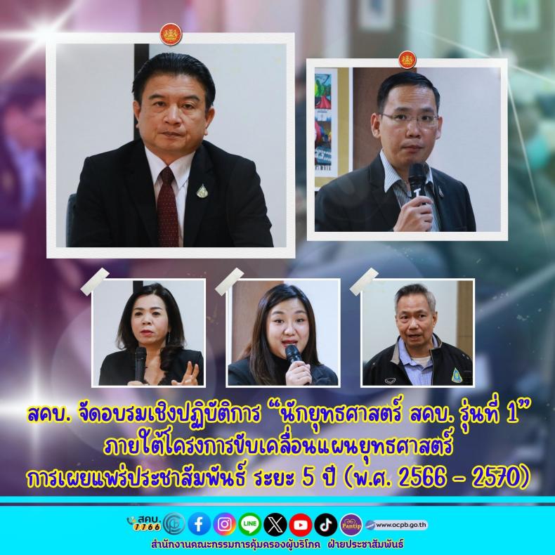 สคบ. จัดอบรมเชิงปฏิบัติการ “นักยุทธศาสตร์ สคบ. รุ่นที่ 1” ภายใต้โครงการขับเคลื่อนแผนยุทธศาสตร์การเผยแพร่ประชาสัมพันธ์ ระยะ 5 ปี (พ.ศ. 2566 - 2570)