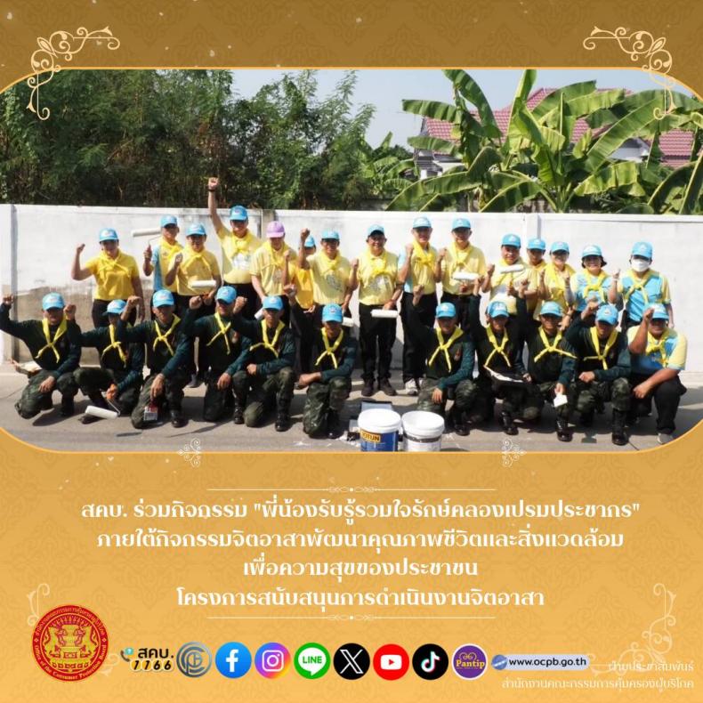 สคบ. ร่วมกิจกรรม "พี่น้องรับรู้รวมใจรักษ์คลองเปรมประชากร" ภายใต้กิจกรรมจิตอาสาพัฒนาคุณภาพชีวิตและสิ่งแวดล้อมเพื่อความสุขของประชาชน โครงการสนับสนุนการดำเนินงานจิตอาสา
