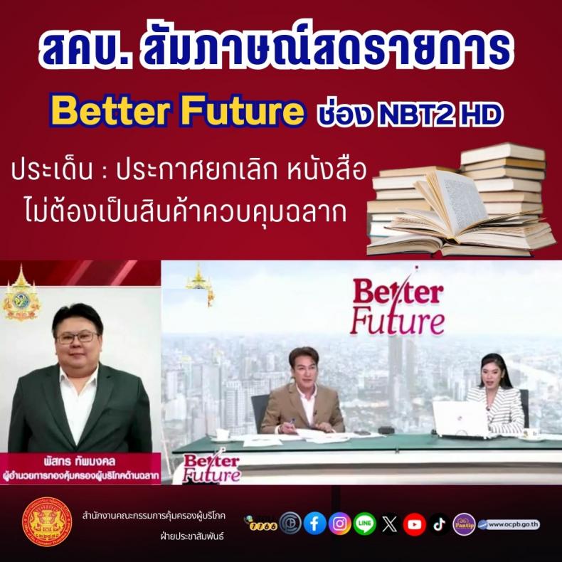 สคบ. สัมภาษณ์สดรายการ Better Future ช่อง NBT HD ประเด็น : ประกาศยกเลิก หนังสือไม่ต้องเป็นสินค้าควบคุมฉลาก