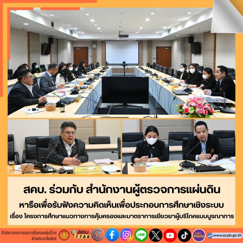สคบ. ร่วมกับ สผผ. หารือเพื่อรับฟังความคิดเห็นเพื่อประกอบการศึกษาเชิงระบบ เรื่องโครงการศึกษาแนวทางการคุ้มครองและมาตราการเยียวยาผู้บริโภคแบบบูรณาการ