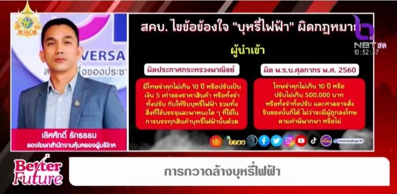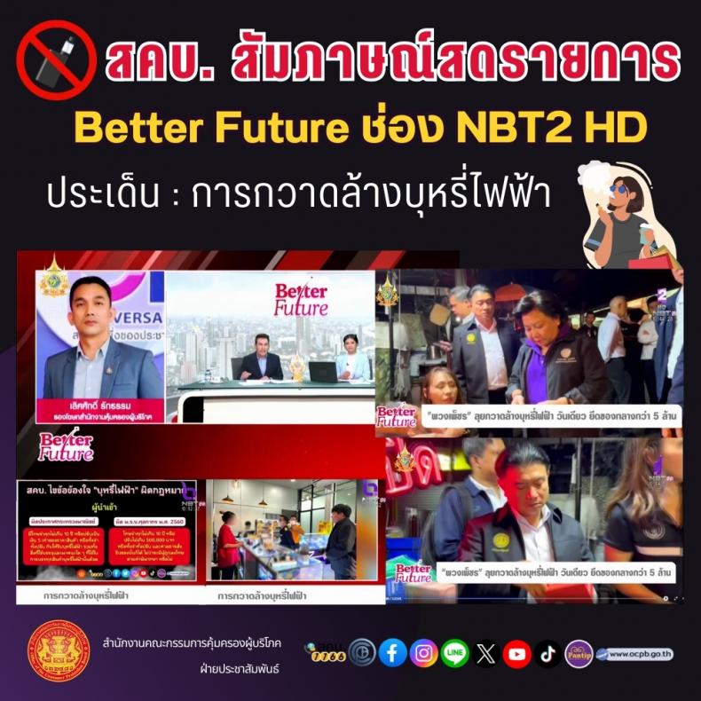 สคบ. สัมภาษณ์สดรายการ Better Future ช่อง NBT2 HD ประเด็น : การกวาดล้างบุหรี่ไฟฟ้า