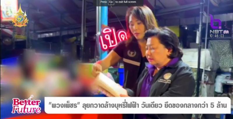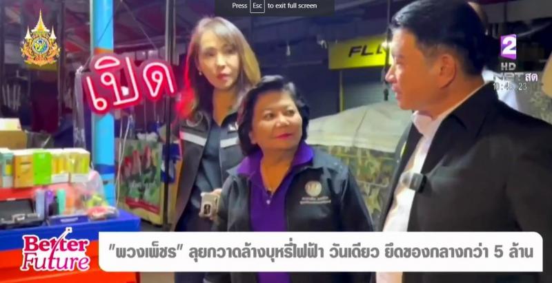 วันศุกร์ที่ 16 กุมภาพันธ์ 2567 เลขาธิการคณะกรรมการคุ้มครองผู้บริโภค (นายธสรณ์อัฑฒ์ ธนิทธิพันธ์) มอบหมายให้นายเลิศศักดิ์ รักธรรม ผอ.ส่วนบังคับคดี และรองโฆษกสำนักงานคณะกรรมการคุ้มครองผู้บริโภคให้สัมภาษณ์สดทางโทรศัพท์ ช่วงเวลา 10.45 - 11.00 น. ในรายการ Better Future ทางช่อง NBT2 HD  ประเด็น : การกวาดล้างบุหรี่ไฟฟ้า สืบเนื่องจากเมื่อคืนวันพฤหัสบดีที่ 15 กุมภาพันธ์ 2567 ดร.พวงเพ็ชร ชุนละเอียด รัฐมนตรีประจำสำนักนายกรัฐมนตรี นำทีม สคบ. ได้ร่วมลงพื้นร่วมกับ กทม. และกรมควบคุมโรคในการกวาดล้างร้านลักลอบขายบุหรี่ไฟฟ้า ย่านคลองถม ซอยนวลจันทร์ และซอยเสนานิคม รวมมูลค่าประมาณ 5,000,000 บาท