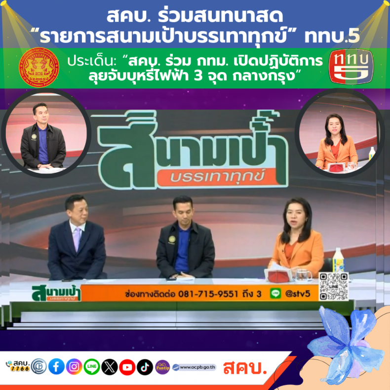 สคบ. เข้าร่วมสัมภาษณ์สดในรายการ "สนามเป้า บรรเทาทุกข์" ประเด็น: สคบ. ร่วม กทม. เปิดปฏิบัติการลุยจับบุหรี่ไฟฟ้า 3 จุด กลางกรุง