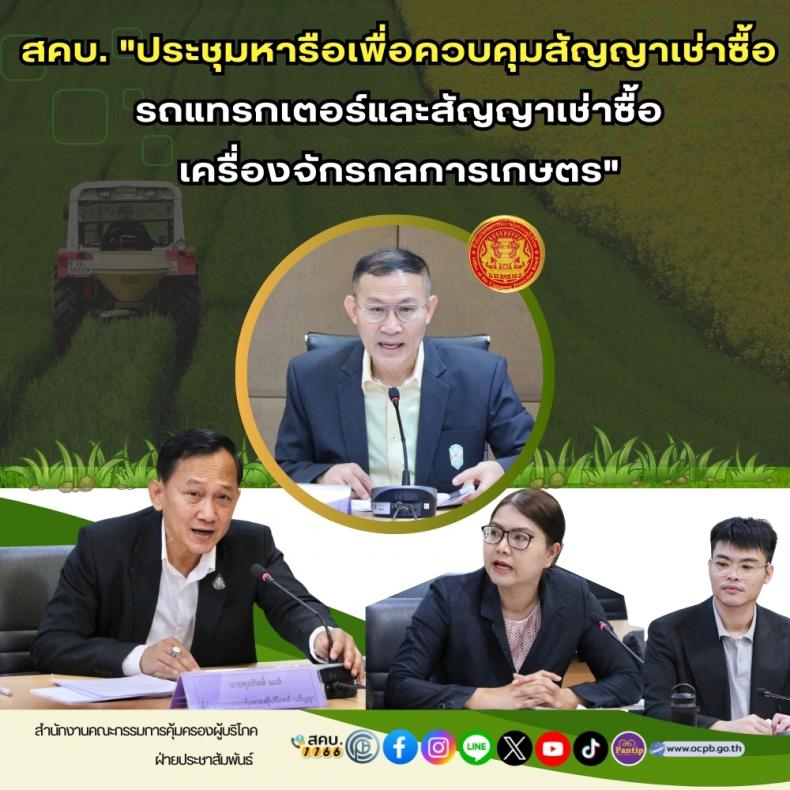 สคบ. "ประชุมหารือเพื่อควบคุมสัญญาเช่าซื้อรถแทรกเตอร์และสัญญาเช่าซื้อเครื่องจักรกลการเกษตร"