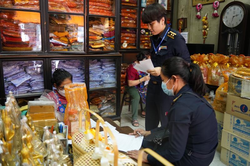 วันที่ 21 กุมภาพันธ์ 2567 เวลา 14.00 น. เลขาธิการคณะกรรมการคุ้มครองผู้บริโภค (นายธสรณ์อัฑฒ์ ธนิทธิพันธ์) มอบหมายให้ นางสาวจารุวรรณ เอนกคณา นักสืบสวนสอบสวนชำนาญการพิเศษ และเจ้าหน้าที่จากกองคุ้มครองผู้บริโภคด้านฉลาก ร่วมกับกรมการค้าภายใน ลงพื้นที่ตรวจสอบผู้ประกอบธุรกิจซึ่งเป็นผู้ผลิตและจำหน่ายสินค้าประเภทชุดสังฆทานและชุดไทยธรรม ณ ร้านจำหน่ายสังฆภัณฑ์ บริเวณเสาชิงช้า เขตพระนคร กรุงเทพมหานคร เพื่อให้เป็นไปตามพระราชบัญญัติคุ้มครองผู้บริโภค พ.ศ. 2522 และที่แก้ไขเพิ่มเติม ประกอบประกาศคณะกรรมการว่าด้วยฉลาก ฉบับที่ 23 (พ.ศ. 2550) เรื่อง ให้ชุดสังฆทานและชุดไทยธรรมเป็นสินค้าที่ควบคุมฉลาก แนะนำให้ผู้ผลิตและผู้จำหน่ายชุดสังฆทานและ ชุดไทยธรรมจัดทำฉลากของสินค้าประเภทชุดสังฆทานและชุดไทยธรรมให้ถูกต้องตามกฎหมาย อันเป็นการคุ้มครองผู้บริโภคให้ได้รับข้อมูล  รวมทั้งคำพรรณนาที่ถูกต้องและเพียงพอต่อการตัดสินใจซื้อชุดสังฆทานและชุดไทยธรรมไปถวายพระภิกษุสงฆ์เพื่อทำบุญเสริมสร้างความเป็นสิริมงคล  และเป็นการเฝ้าระวังการเอารัดเอาเปรียบผู้บริโภค หากร้านค้าขายชุดสังฆทานโดยไม่มีฉลากหรือมีฉลากแต่การแสดงฉลากนั้นไม่ถูกต้องตามที่กฎหมายกำหนด  ต้องระวางโทษจำคุกไม่เกิน 6 เดือน ปรับไม่เกิน 100,000 บาท หรือทั้งจำทั้งปรับ กรณีเป็นผู้ผลิตหรือผู้นำเข้า ต้องระวางโทษจำคุกไม่เกิน 1 ปี ปรับไม่เกิน 200,000 บาท หรือทั้งจำทั้งปรับ