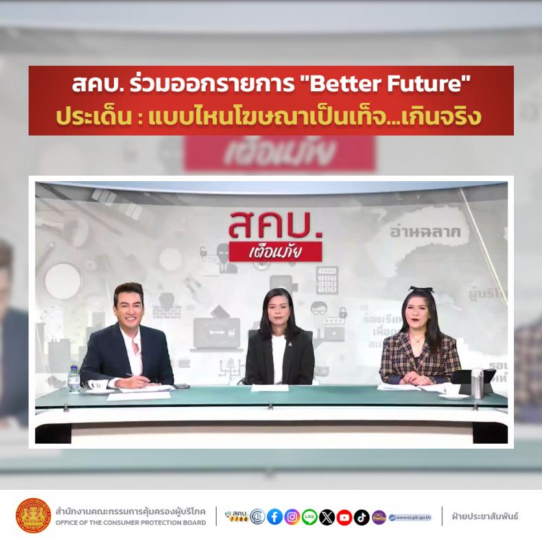 สคบ. ร่วมออกรายการ "Better Future" ประเด็น : แบบไหนโฆษณาเป็นเท็จ…เกินจริง