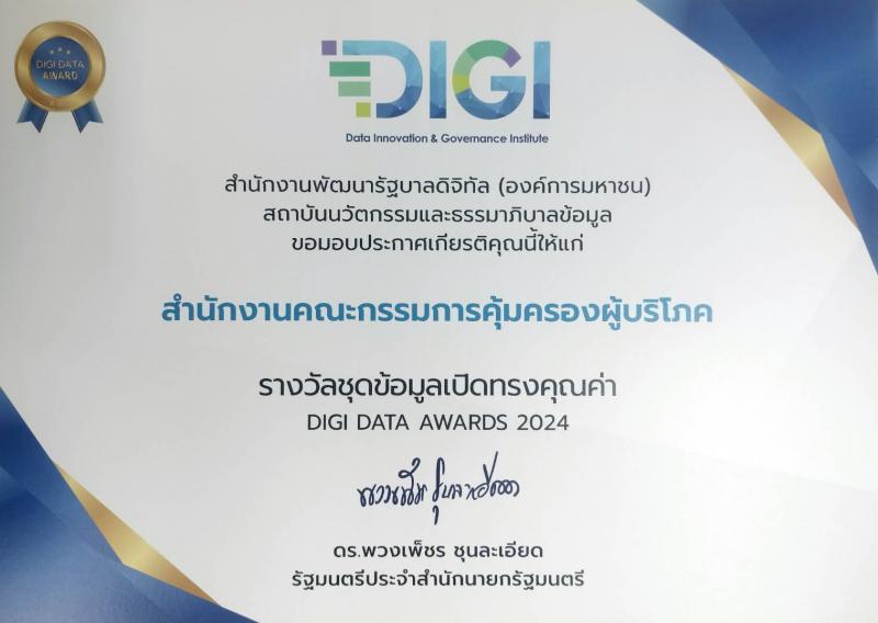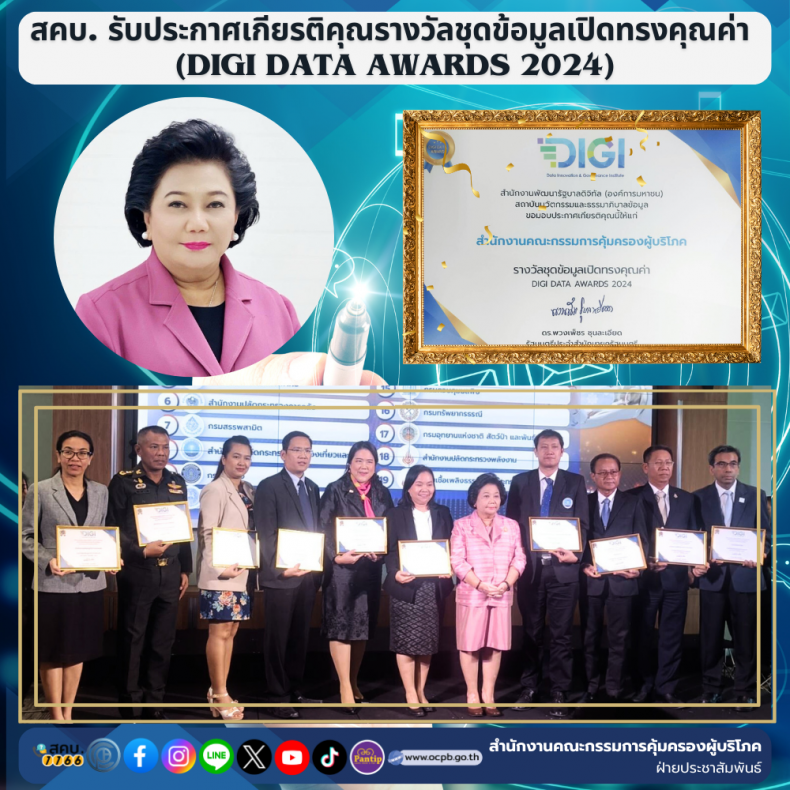 สคบ. รับประกาศเกียรติคุณรางวัลชุดข้อมูลเปิดทรงคุณค่า (DIGI DATA Awards 2024)