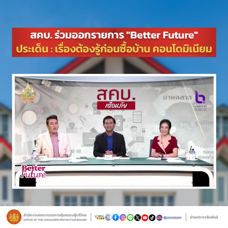 สคบ. ร่วมออกรายการ "Better Future" ประเด็น : เรื่องต้องรู้ก่อนซื้อบ้าน คอนโดมิเนียม
