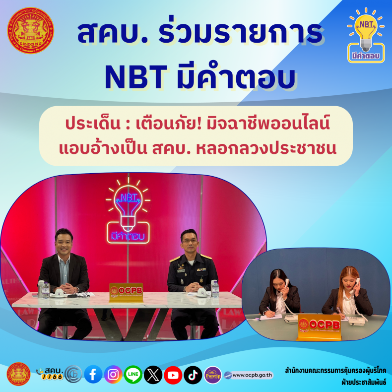 สคบ. ร่วมออกรายการ NBT มีคำตอบ ประเด็น : เตือนภัย! มิจฉาชีพออนไลน์ แอบอ้างเป็น สคบ. หลอกลวงประชาชน
