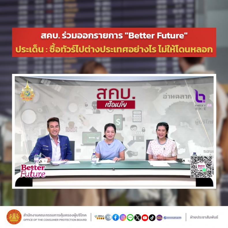 สคบ. ร่วมออกรายการ "Better Future" ประเด็น : ซื้อทัวร์ไปต่างประเทศอย่างไร ไม่ให้โดนหลอก