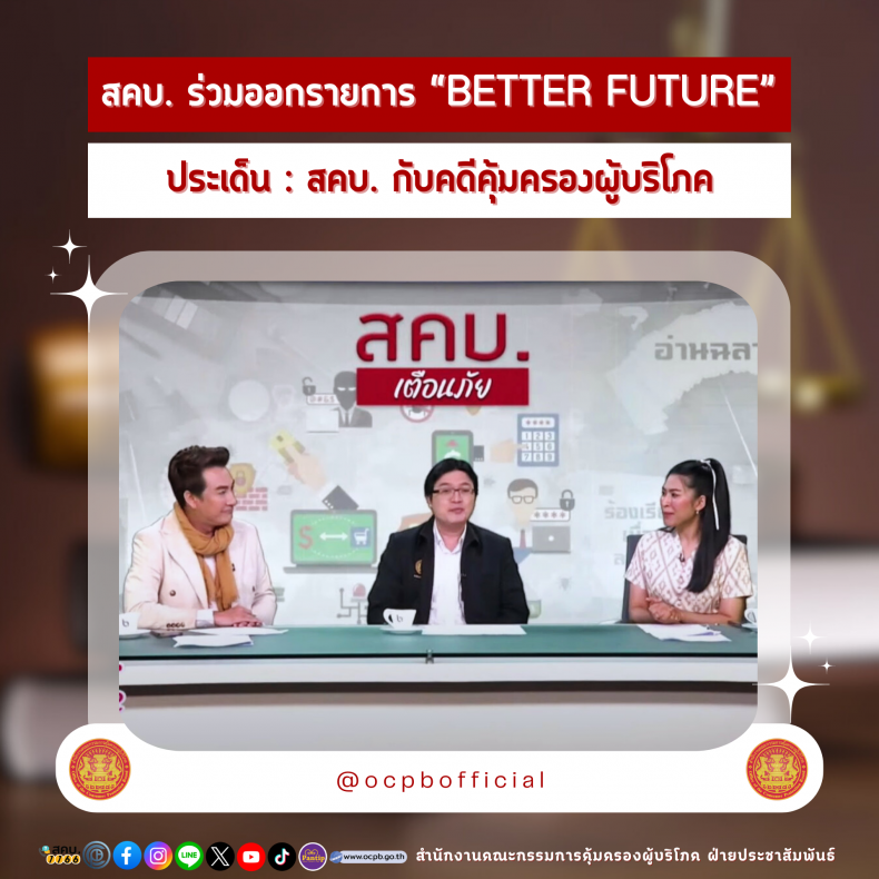 สคบ. ร่วมออกรายการ “Better Future” ประเด็น : สคบ. กับคดีคุ้มครองผู้บริโภค