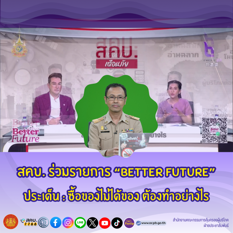 สคบ. ร่วมรายการ “BETTER FUTURE” ประเด็น : ซื้อของไม่ได้ของ ต้องทำอย่างไร