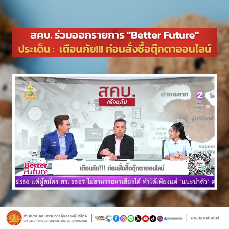 สคบ. ร่วมรายการ Better Future ประเด็น : เตือนภัย!!! ก่อนสั่งซื้อตุ๊กตาออนไลน์