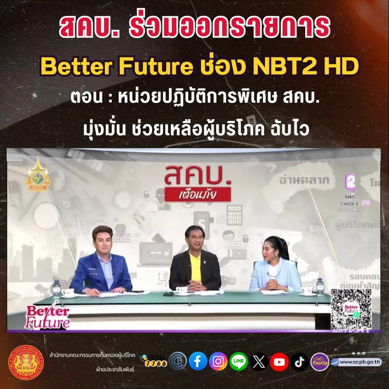 สคบ. ร่วมออกรายการ Better Future ช่อง NBT2 HD ตอน : หน่วยปฏิบัติการพิเศษ สคบ. มุ่งมั่น ช่วยเหลือผู้บริโภค ฉับไว