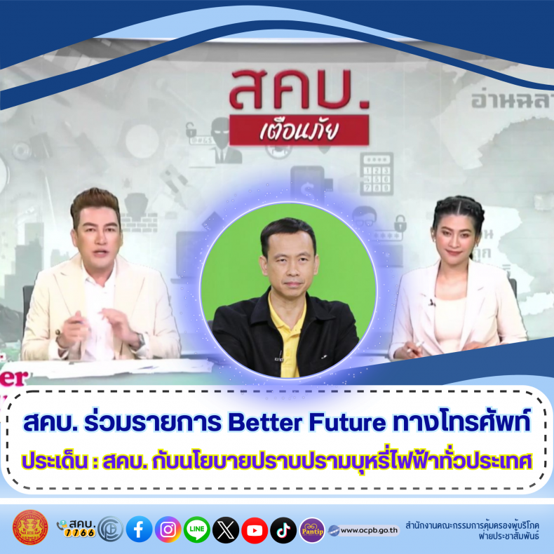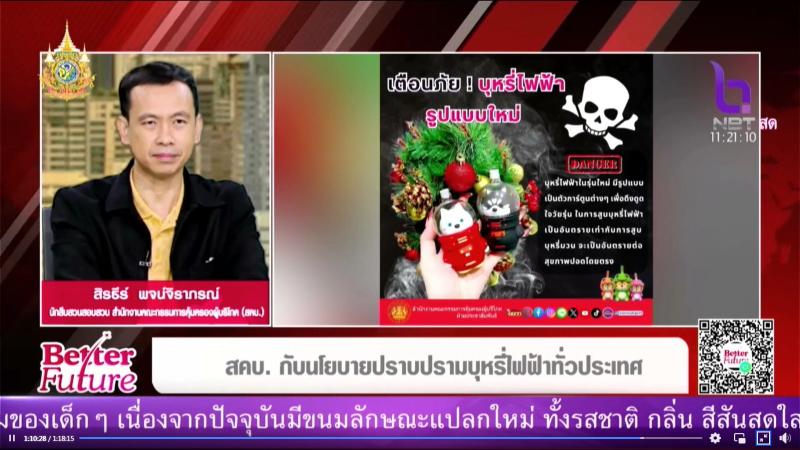 สคบ. ร่วมรายการ Better Future ทางโทรศัพท์ ประเด็น : สคบ. กับนโยบายปราบปรามบุหรี่ไฟฟ้าทั่วประเทศ