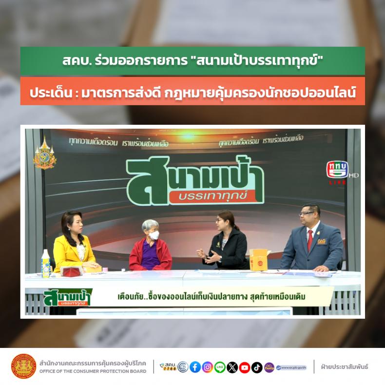 สคบ. ร่วมรายการ สนามเป้าบรรเทาทุกข์ ประเด็น : มาตรการส่งดี กฎหมายคุ้มครองนักชอปออนไลน์