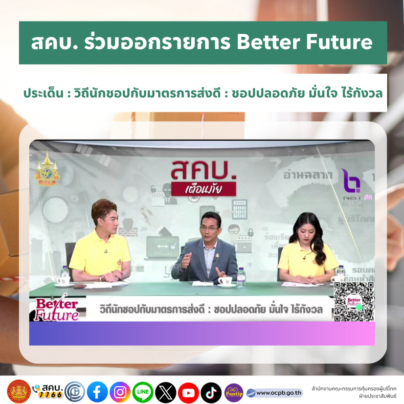 สคบ. ร่วมรายการ Better Future ประเด็น : วิถีนักชอปกับมาตรการส่งดี : ชอปปลอดภัย มั่นใจ ไร้กังวล