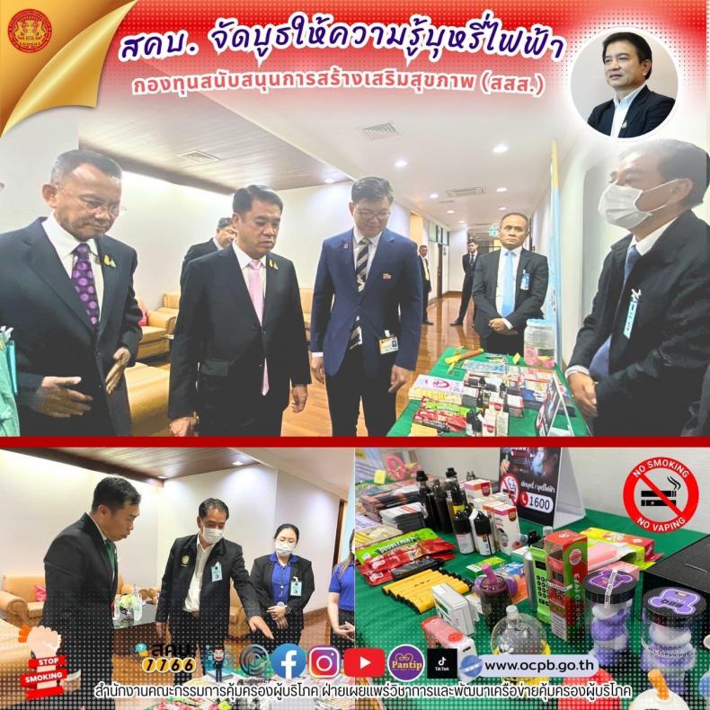เจ้าหน้าที่กองเผยแพร่และประชาสัมพันธ์  ร่วมจัดบูธให้ความรู้เกี่ยวกับบุหรี่ไฟฟ้า เพื่อให้รู้เท่าทัน มีความเข้าใจ ไม่ให้หลงผิดเข้าไปเกี่ยวข้องกับบุหรี่ไฟฟ้า ทั้งในส่วนของการครอบครอง การจำหน่าย และการให้บริการ รวมถึงความรู้เกี่ยวกับสินค้าอันตรายและสิทธิผู้บริโภคเบื้องต้น อันจะเป็นการพัฒนาความรู้และคุณภาพชีวิต ที่ส่งผลถึงปัญหาต่างๆ ในครอบครัวและสังคม ในการประชุมคณะกรรมการกองทุนสนับสนุนการสร้างเสริมสุขภาพ ครั้งที่4/2567 โดยมี นายสุริยะ จึงรุ่งเรืองกิจ รองนายกรัฐมนตรีเป็นประธานในการประชุม ณ บริเวณโถงหน้าห้องประชุม 301 ตึกบัญชาการ1  ทำเนียบรัฐบาล