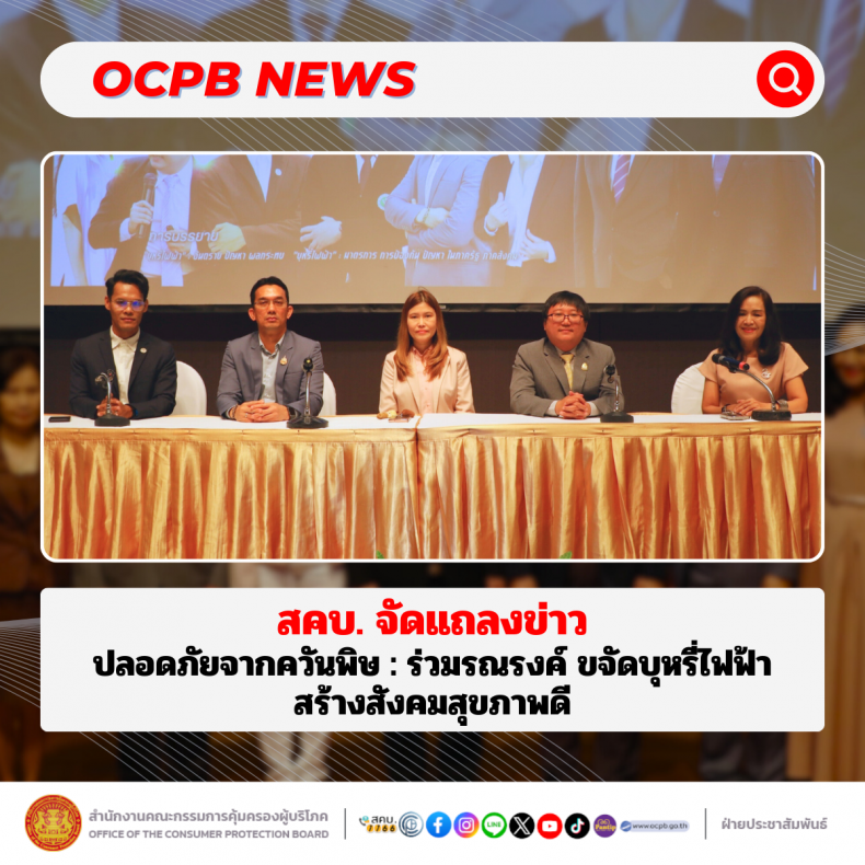 สคบ. จัดแถลงข่าว ปลอดภัยจากควันพิษ : ร่วมรณรงค์ ขจัดบุหรี่ไฟฟ้า สร้างสังคมสุขภาพดี
