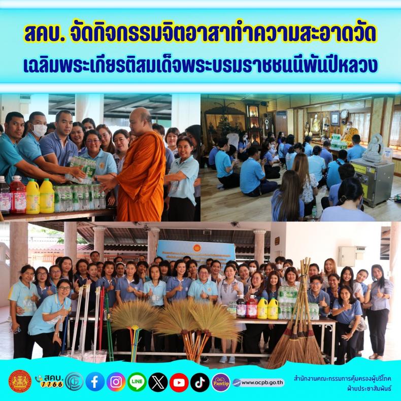 สคบ. จัดกิจกรรมจิตอาสาทำความสะอาดวัด เฉลิมพระเกียรติสมเด็จพระบรมราชชนนีพันปีหลวง