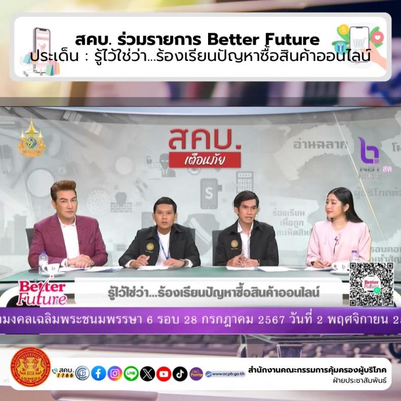 สคบ. ร่วมรายการ Better Future ประเด็น : รู้ไว้ใช่ว่า...ร้องเรียนปัญหาซื้อสินค้าออนไลน์