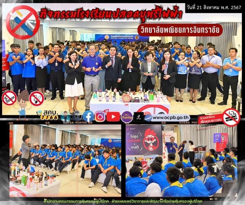 สคบ. ร่วมกิจกรรม ภายใต้โครงการการบังคับใช้กฎหมายเกี่ยวกับการขายบุหรี่ไฟฟ้าและการสร้างองค์ความรู้เรื่องพิษภัยของบุหรี่ไฟฟ้า ณ วิทยาลัยพณิชยการอินทราชัย
