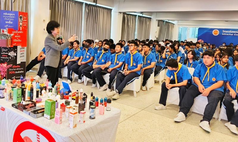 การจัดกิจกรรม "โรงเรียนปลอดบุหรี่ไฟฟ้า” ได้ขยายกลุ่มเป้าหมายสู่ระดับอาชีวศึกษา โดยก่อนหน้านี้ได้จัดในระดับโรงเรียนประถมและมัธยมศึกษามาแล้ว วันนี้ได้วิทยากรผู้ทรงคุณวุฒิ คือ ศาสตราจารย์เกียรติคุณ แพทย์หญิง สุวรรณา เรืองกาญจนเศรษฐ์ อาจารย์พิเศษคณะแพทยศาสตร์โรงพยาบาลรามาธิบดี สาขาวิชาเวชศาสตร์ผู้ป่วยนอกเด็กและวัยรุ่น ผู้เชี่ยวชาญเรื่องพิษวิทยาในเด็กและเวชศาสตร์วัยรุ่น และ นายถิระ หงสกุล นักวิชาการเผยแพร่ชำนาญการ สคบ. บรรยายให้ความรู้เกี่ยวบุหรี่ไฟฟ้า ทั้งในส่วนของ พิษ ภัย ความอันตรายต่อสุขภาพ กฎหมายที่เกี่ยวข้อง บทลงโทษในการครอบครอง การจำหน่าย และการให้บริการ ให้แก่น้องๆ นักศึกษา รวมถึงครู อาจารย์ และเจ้าหน้าที่ ให้รู้เท่าทัน มีความเข้าใจที่ถูกต้องเกี่ยวกับบุหรี่ไฟฟ้า รวมถึงความรู้เกี่ยวกับสินค้าอันตรายอื่นๆ การใช้ชีวิตอย่างปลอดภัยในโลกออนไลน์ และสิทธิผู้บริโภคเบื้องต้น อันจะเป็นการพัฒนาความรู้และคุณภาพชีวิตแก่เยาวชน ซึ่งส่งผลถึงปัญหาต่างๆ ในครอบครัวและสังคม โดยมีผู้สนใจเข้าร่วมกิจกรรมประมาณ 220 คน