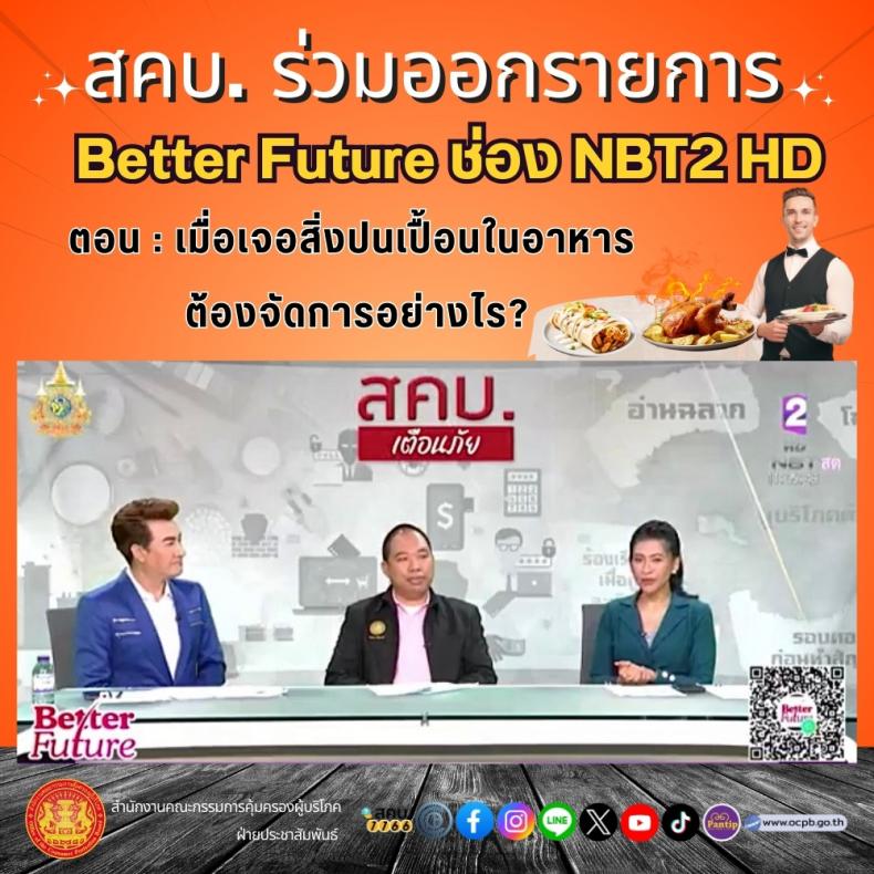 สคบ. ร่วมออกรายการ Better Future ช่อง NBT2 HD ตอน : เมื่อเจอสิ่งปนเปื้อนในอาหาร ต้องจัดการอย่างไร ?