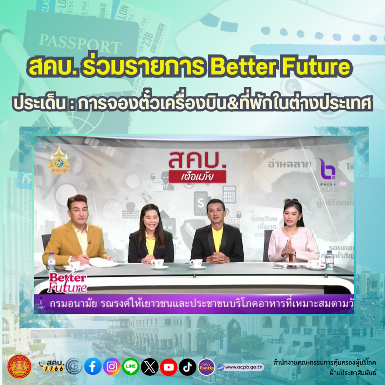 สคบ. ร่วมรายการ Better Future ประเด็น : การจองตั๋วเครื่องบิน&ที่พักในต่างประเทศ