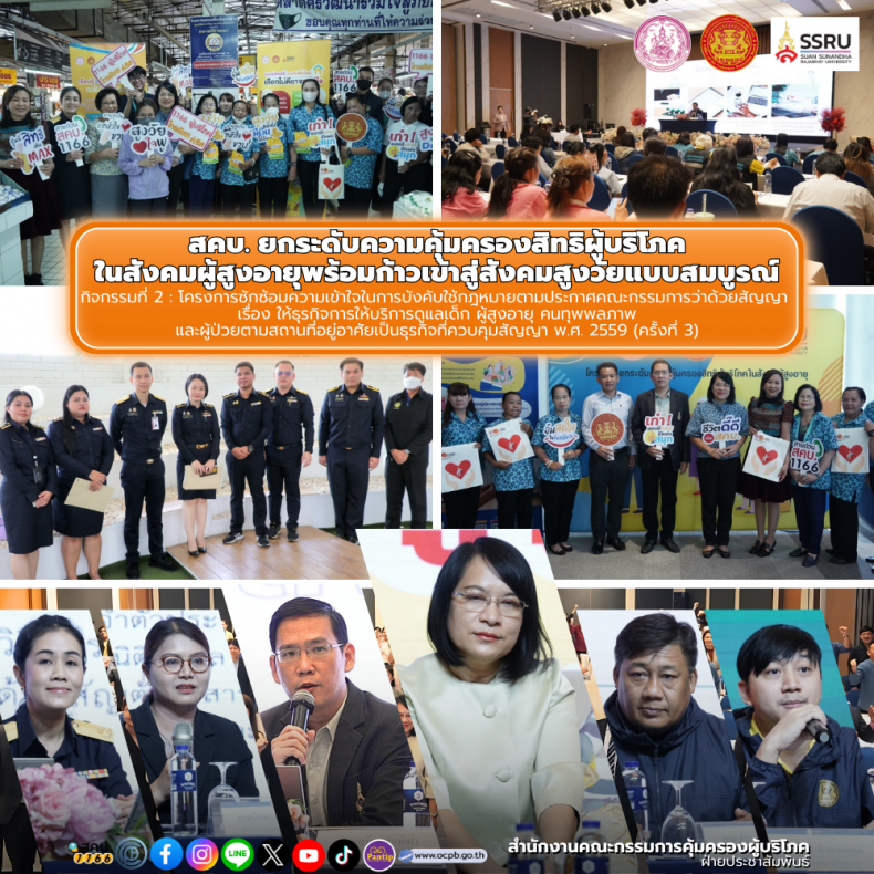 รวมทั้งมีการลงพื้นที่ตรวจสอบผู้ประกอบธุรกิจเกี่ยวกับการดูแลผู้สูงอายุให้ปฏิบัติตามกฎหมายได้อย่างถูกต้อง ณ สถานประกอบการดูแลผู้สูงอายุ พร้อมทั้งลงพื้นที่ทำกิจกรรมรณรงค์ประชาสัมพันธ์สร้างตระหนักถึงสิทธิผู้บริโภค ณ ตลาดศิริวัฒนา: กาดธานินทร์