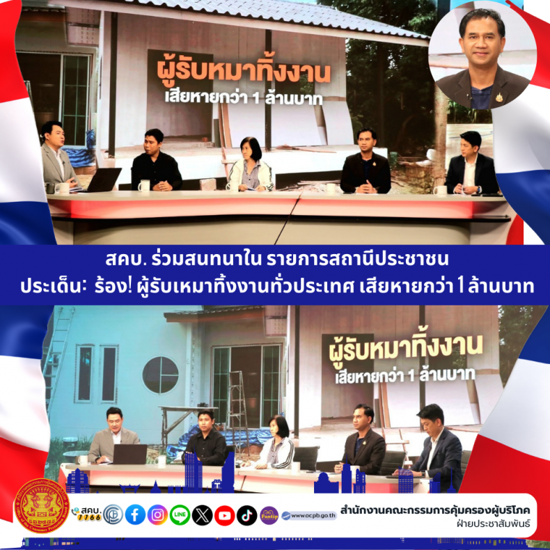สคบ. ร่วมสนทนาใน รายการสถานีประชาชน ประเด็น: ร้อง! ผู้รับเหมาทิ้งงานทั่วประเทศ เสียหายกว่า 1 ล้านบาท