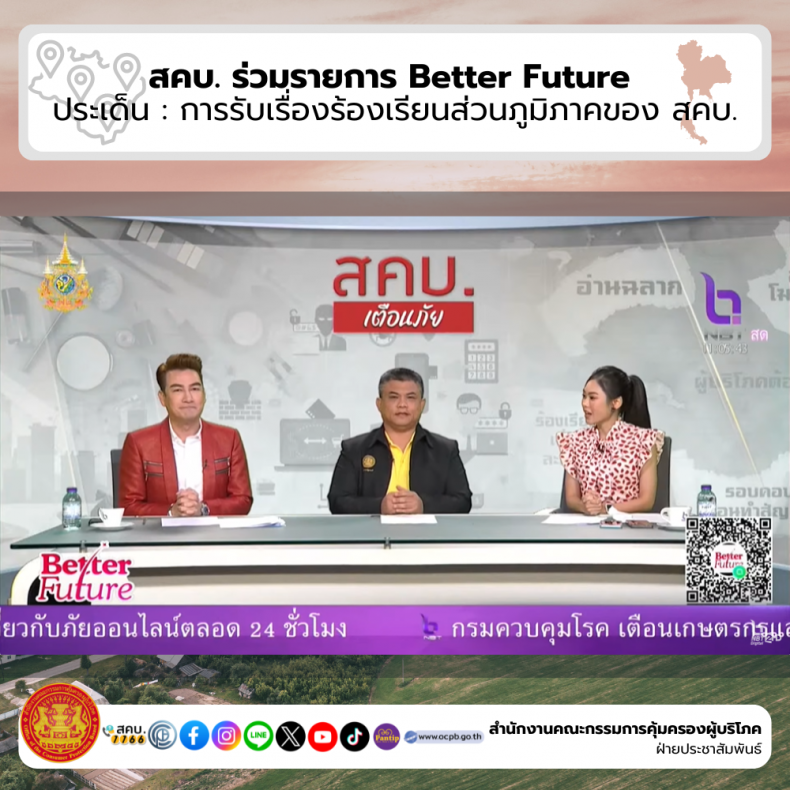 สคบ. ร่วมรายการ Better Future ประเด็น : การรับเรื่องร้องเรียนส่วนภูมิภาคของ สคบ.