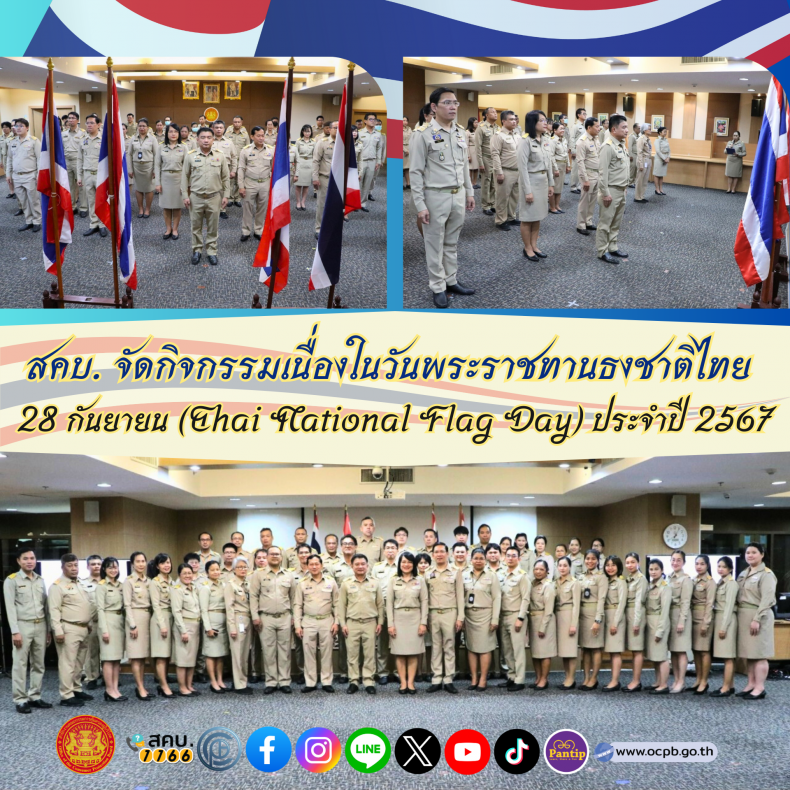 สคบ. จัดกิจกรรมเนื่องในวันพระราชทานธงชาติไทย 28 กันยายน (Thai National Flag Day) ประจำปี 2567