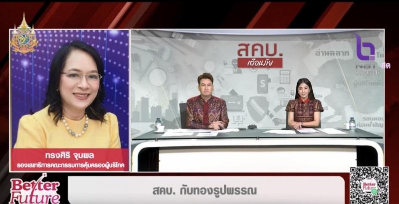 วันศุกร์ที่ 26 กันยายน 2567 เลขาธิการคณะกรรมการคุ้มครองผู้บริโภค (นายธสรณ์อัฑฒ์ ธนิทธิพันธ์) มอบหมายให้รองเลขาธิการคณะกรรมการคุ้มครองผู้บริโภค (นาวสาวทรงศิริ  จุมพล) ให้สัมภาษณ์สดทางโทรศัพท์ ช่วงเวลา 11.00 – 11.30 น. รายการ Better Future ทางช่อง NBT2 HD  ตอน : สคบ. กับทองรูปพรรณ