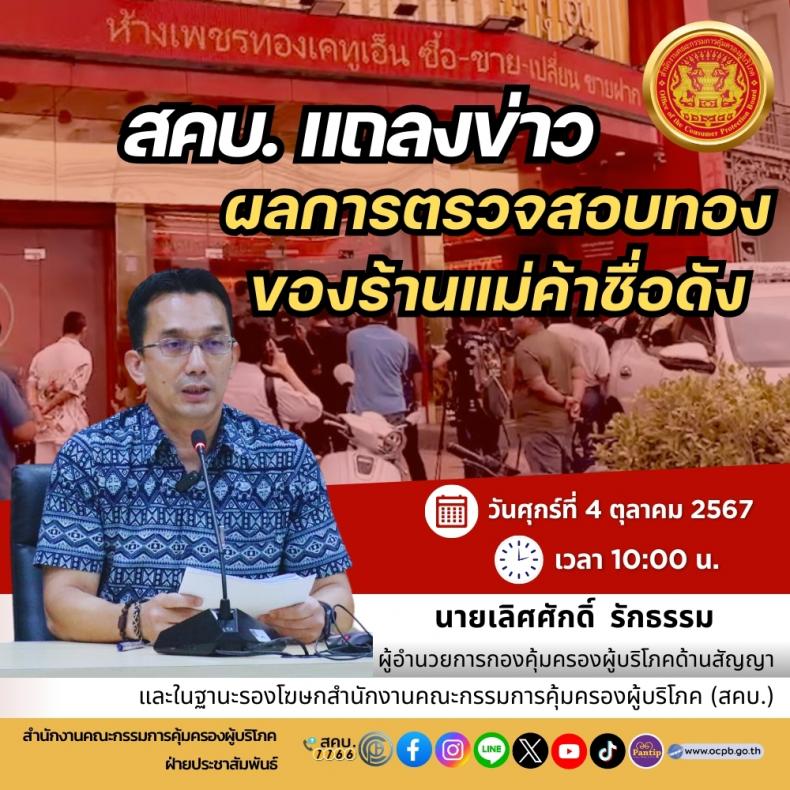 สคบ. แถลงข่าวผลการตรวจสอบทองของร้านแม่ค้าชื่อดัง