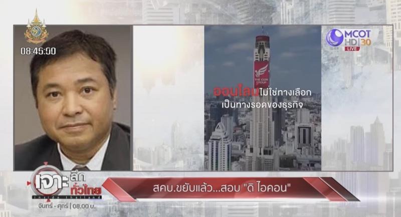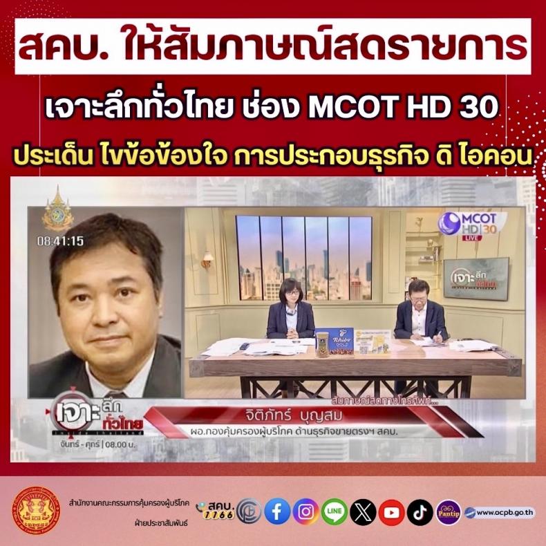 สคบ. ให้สัมภาษณ์สดรายการเจาะลึกทั่วไทย ช่อง MCOT HD 30 ประเด็น ไขข้อข้องใจ การประกอบธุรกิจ ดิ ไอคอน