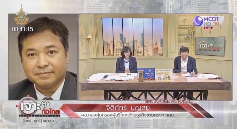 ผู้บริโภคด้านธุรกิจขายตรงและตลาดแบบตรง ให้สัมภาษณ์สดทางโทรศัพท์ในรายการเจาะลึกทั่วไทย ช่อง MCOT HD 30 ประเด็น