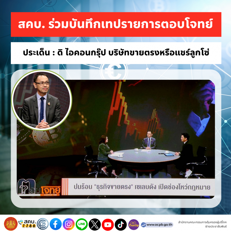 สคบ. ร่วมบันทึกเทปรายการตอบโจทย์ ประเด็น : ดิ ไอคอนกรุ๊ป บริษัทขายตรงหรือแชร์ลูกโซ่