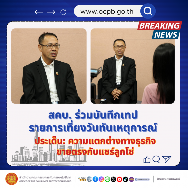สคบ. ร่วมบันทึกเทปรายการเที่ยงวันทันเหตุการณ์ ประเด็น: ความแตกต่างทางธุรกิจขายตรงกับแชร์ลูกโซ่