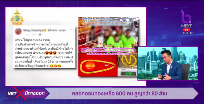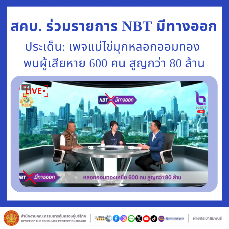 สคบ. ร่วมรายการ NBT มีทางออก ประเด็น: เพจแม่ไข่มุกหลอกออมทอง พบผู้เสียหาย 600คน สูญกว่า 80 ล้าน