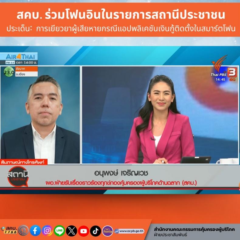 สคบ. ร่วมโฟนอินในรายการสถานีประชาชน ประเด็น: การเยียวยาผู้เสียหายกรณีแอปพลิเคชันเงินกู้ติดตั้งในสมาร์ตโฟน