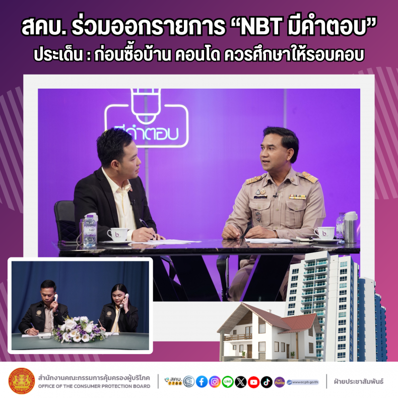 สคบ. ร่วมออกรายการ NBT มีคำตอบ ประเด็น : ก่อนซื้อบ้าน คอนโด ควรศึกษาให้รอบคอบ